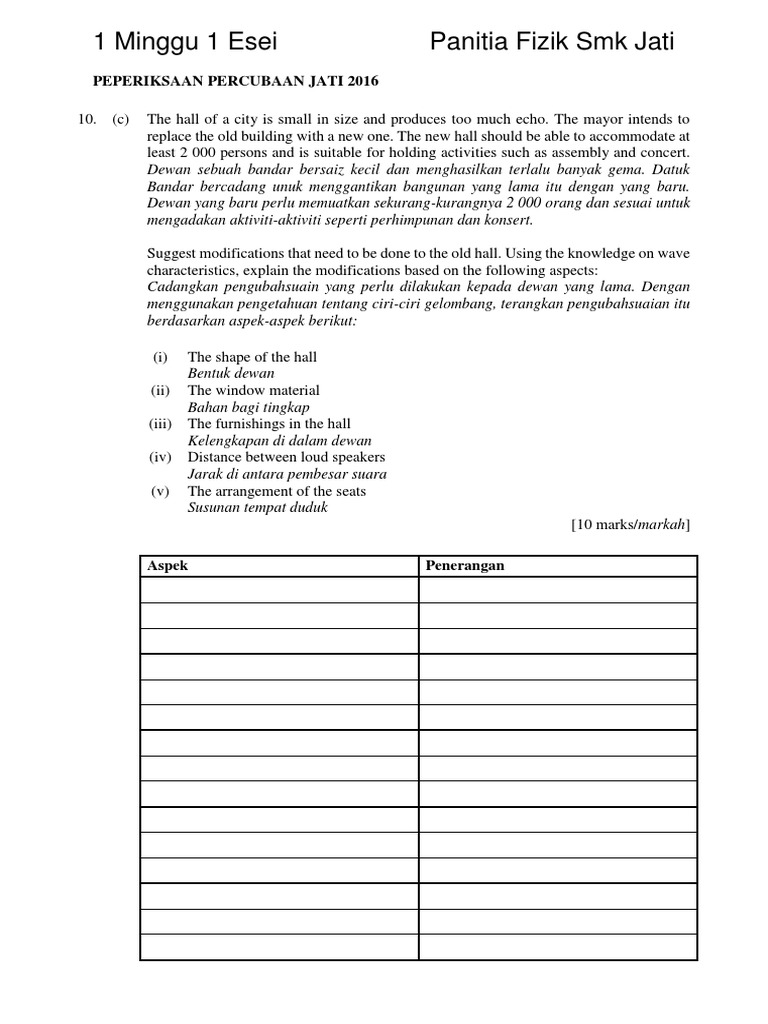 Contoh Soalan Spm Fizik. Koleksi soalan percubaan spm fizik (physics)mengumpulkan kertas soalan fizik yang sesuai digunakan untuk calon spm di malaysia. Contoh, berikan saiz kipas yang sesuai, dijawab "tidak terlalu kecil".